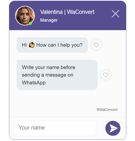 Our widgets imitate real messenger online chats that encourage visitors to engage actively. However, the user is redirected to the mobile app only after sending the first message. At this stage, up to 90% of fake button clicks are filtered out — including spam bots and malicious users.