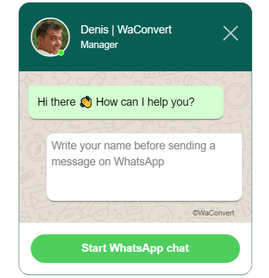 Before starting a conversation in WhatsApp, the user must send the first message in the website chat window.